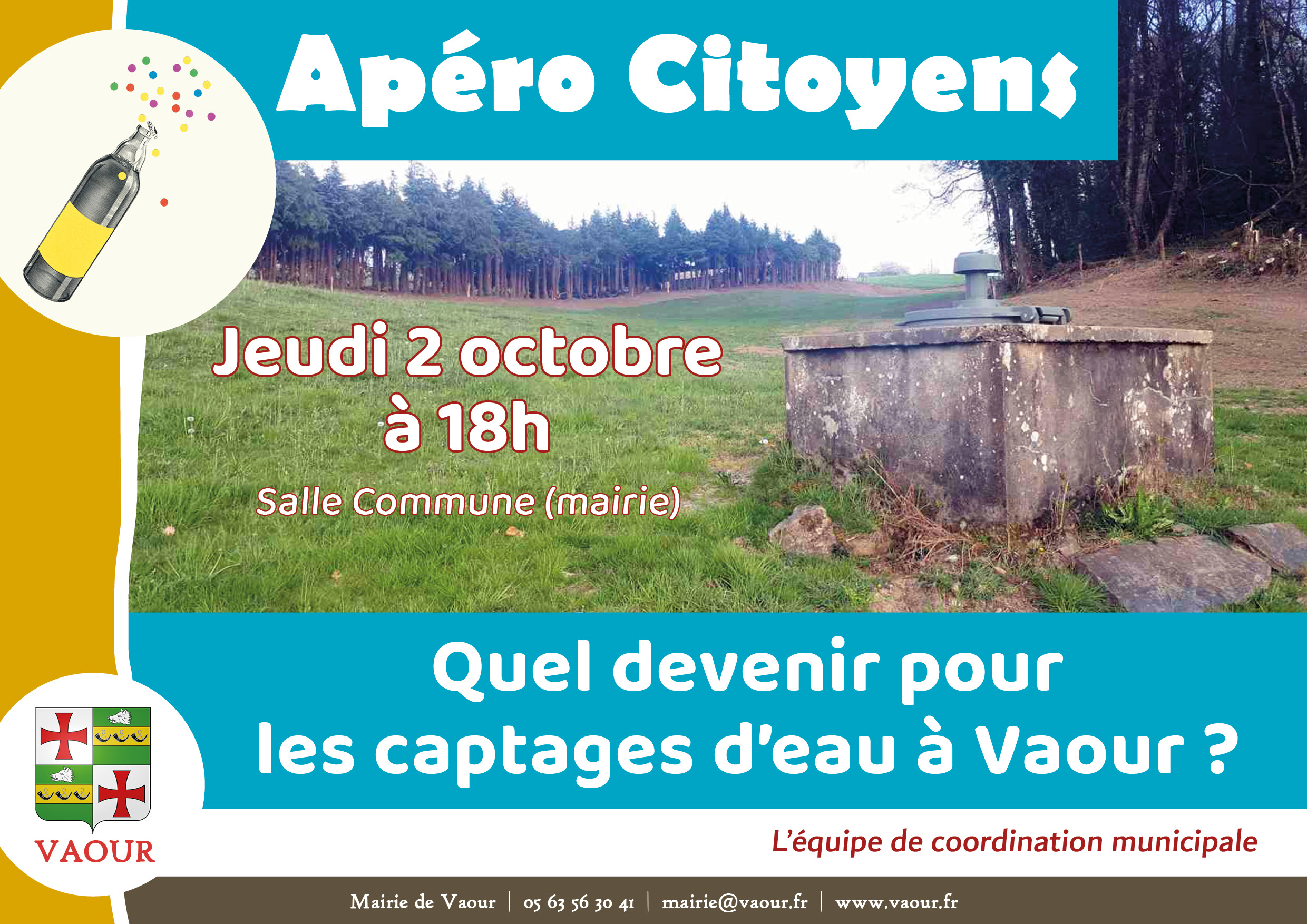 Publié le 23 septembre 2025 par Commission CommunicationApéro Citoyens – Jeudi 2 octobre – Quel devenir pour les captages d’eau à Vaour ?