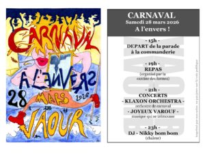 Publié le 26 mars 202630 mars 2026 par Commission CommunicationCarnaval de Vaour 2026 On va tout mettre à l’envers ! Venez nombreux et en famille.